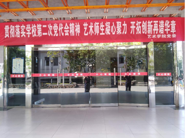 2、对未张贴有明显警示标志的大门采取在玻璃门上张贴警示条纹或“小心玻璃”红色字体的方式进行全面整改,提醒广大师生注意安全。