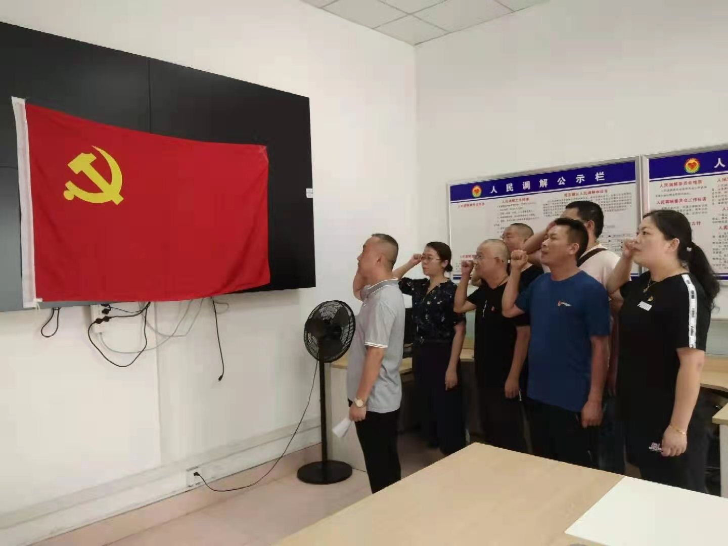 本次活动后,全体党员回到调解室面对党旗重温入党誓词,回顾入党时的初心使命。作为一名普通党员,参与并见证了在伟大的中国共产党带领下祖国实现了第一个百年奋斗目标,同时将以高昂的精神状态和昂扬的斗志为实现中华民族伟大复兴努力奋斗。